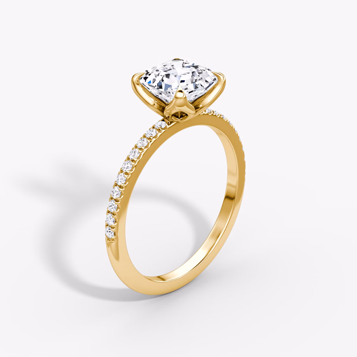 The Classic Petal solitaire in 18k yellow gold with a asscher diamond
