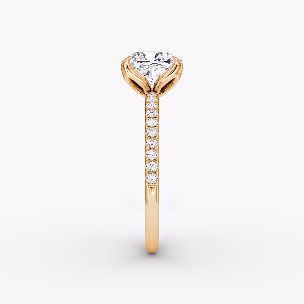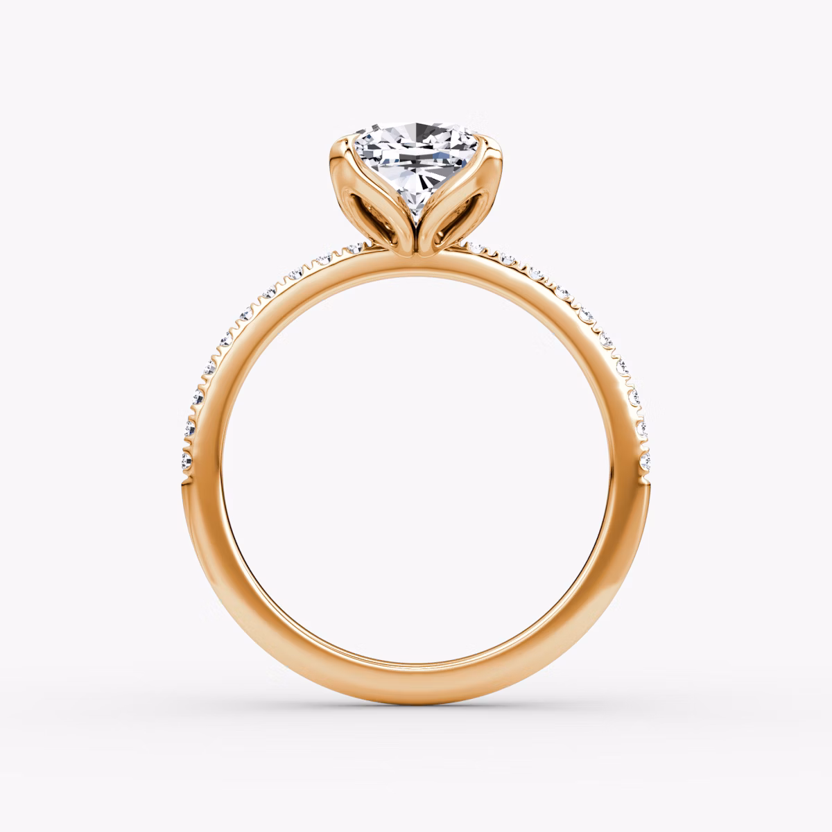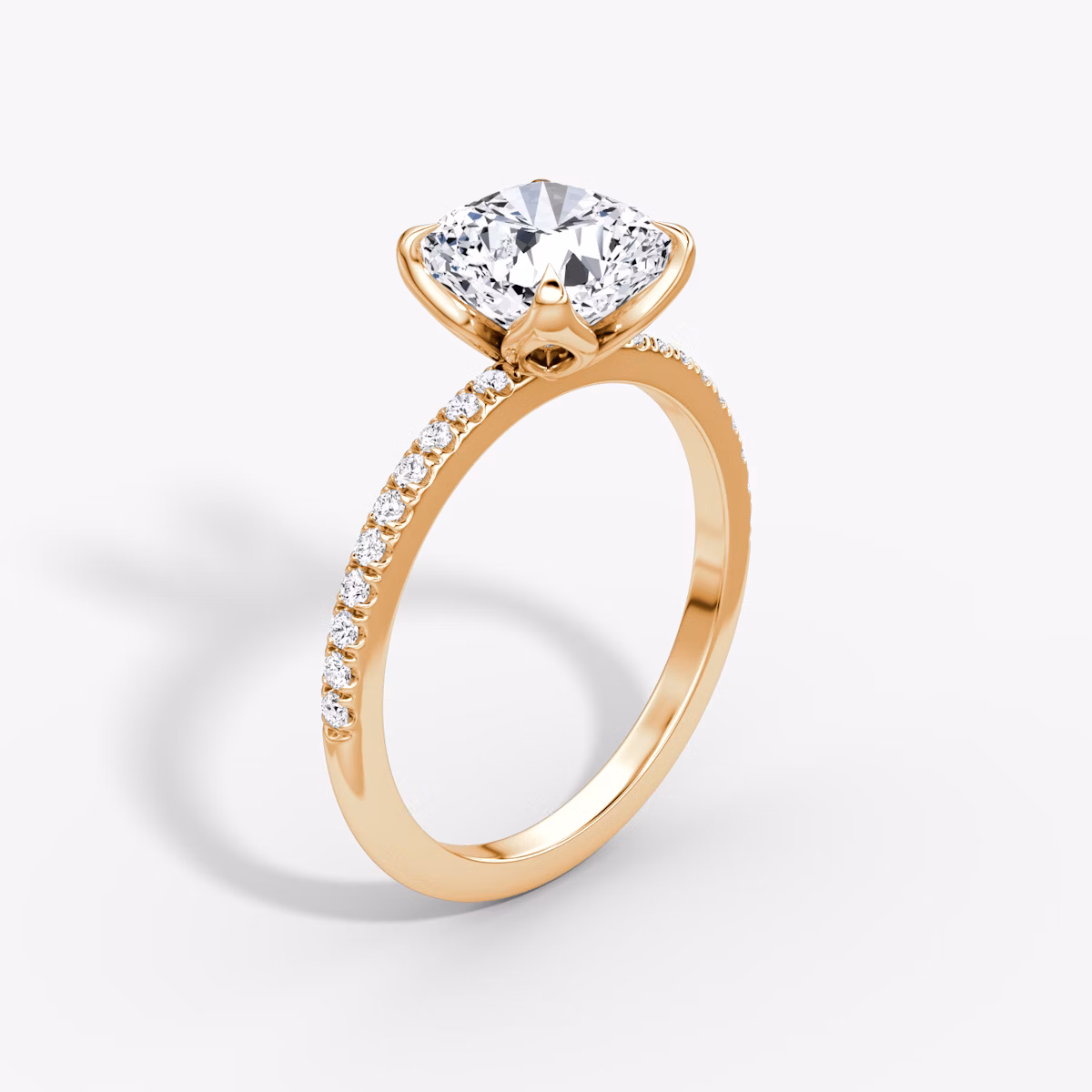 The Classic Petal solitaire in 14k rose gold with a cushion diamond