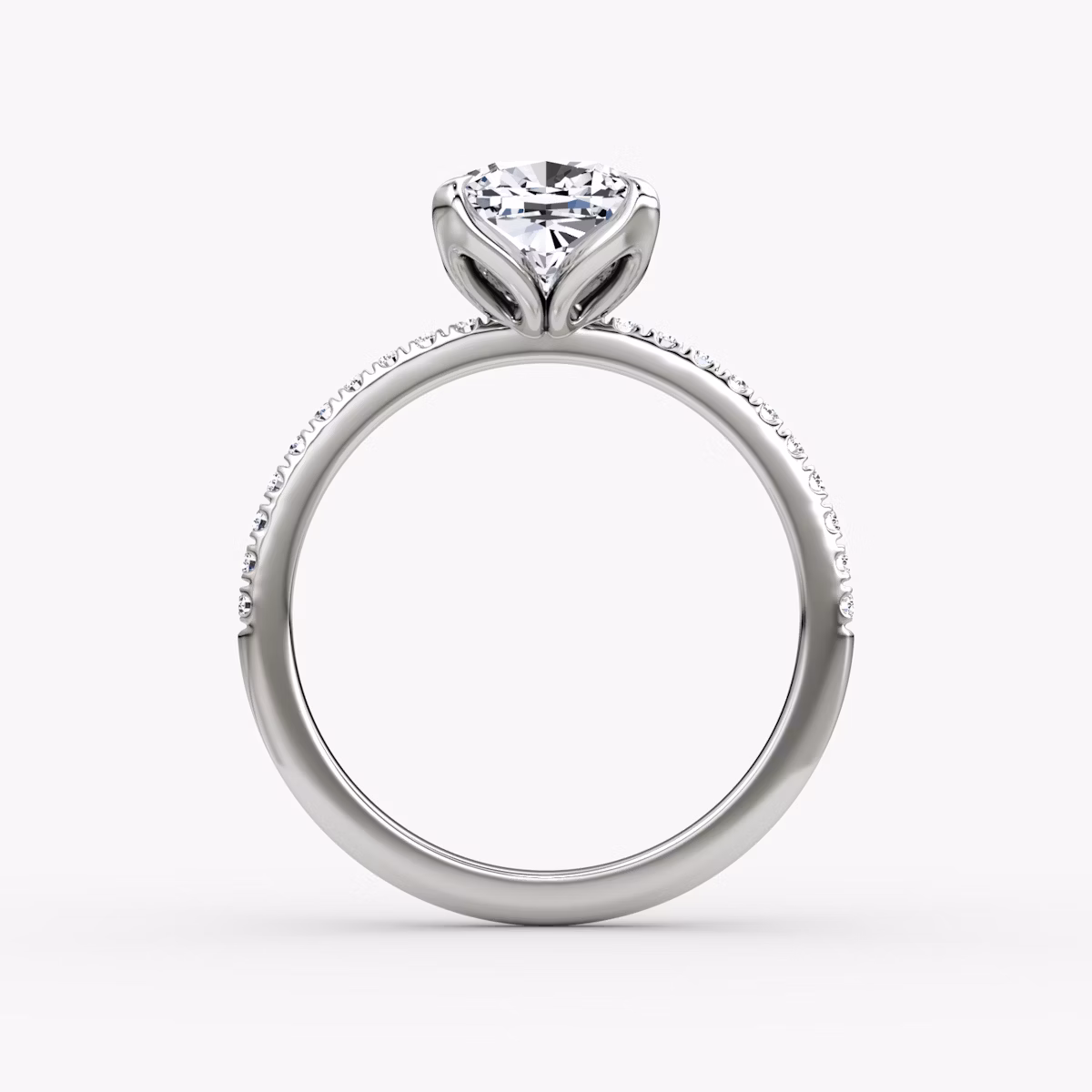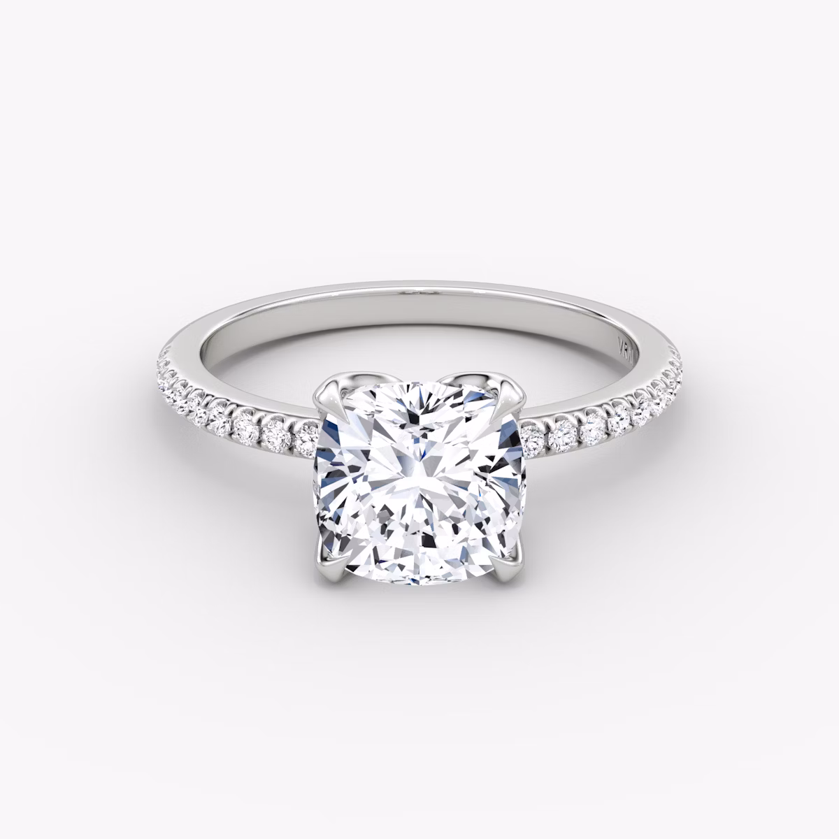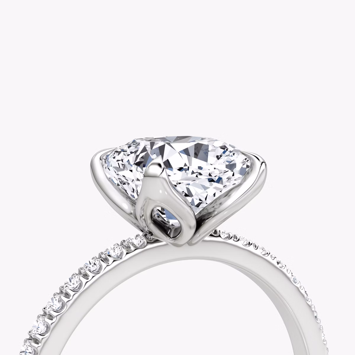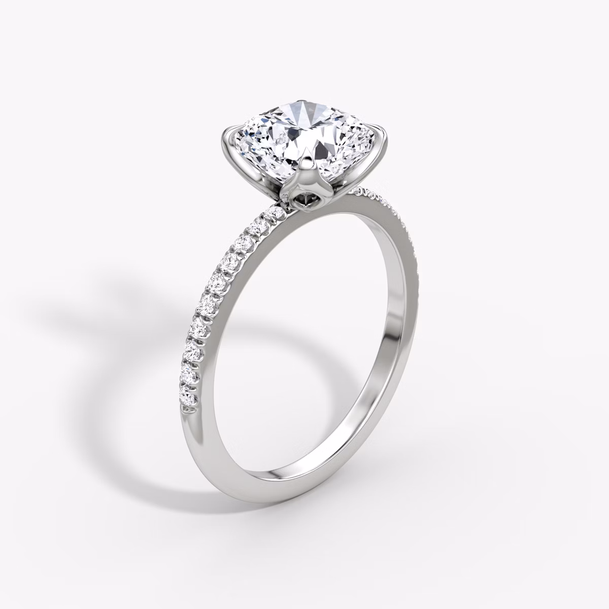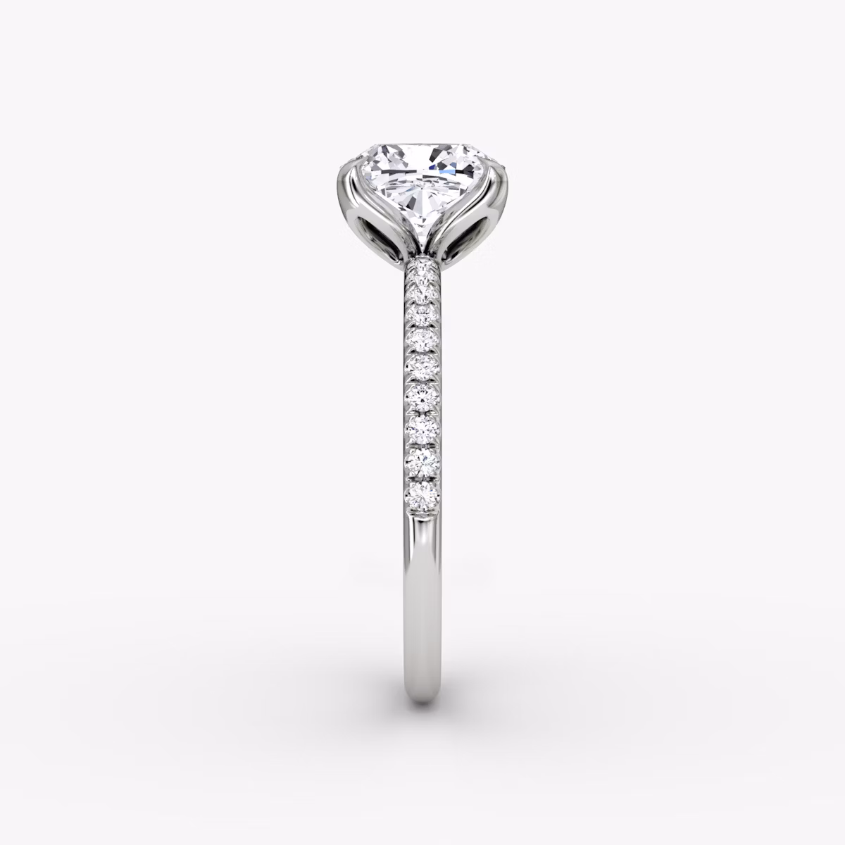 The Classic Petal solitaire in 18k white gold with a cushion diamond