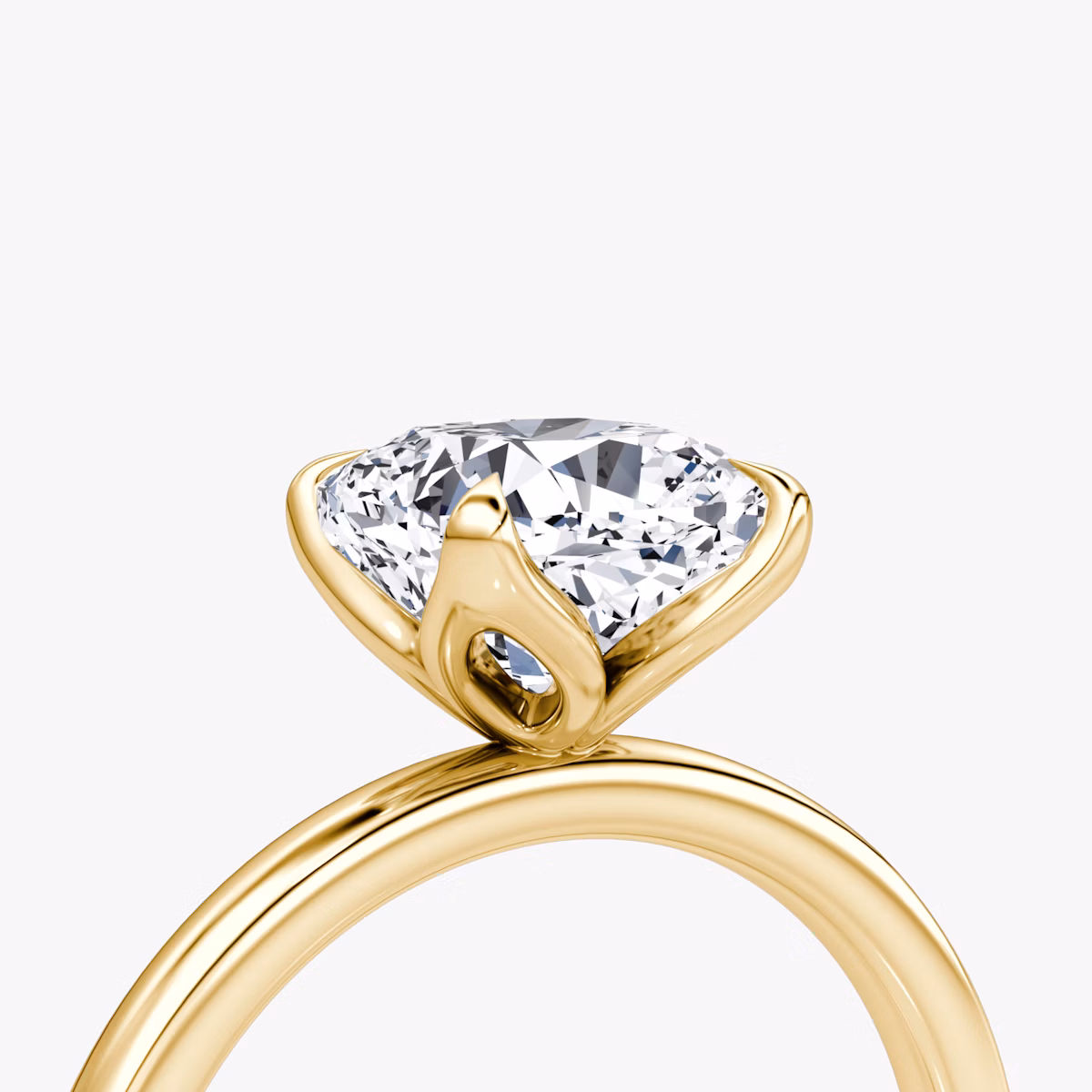 The Classic Petal solitaire in 18k yellow gold with a cushion diamond