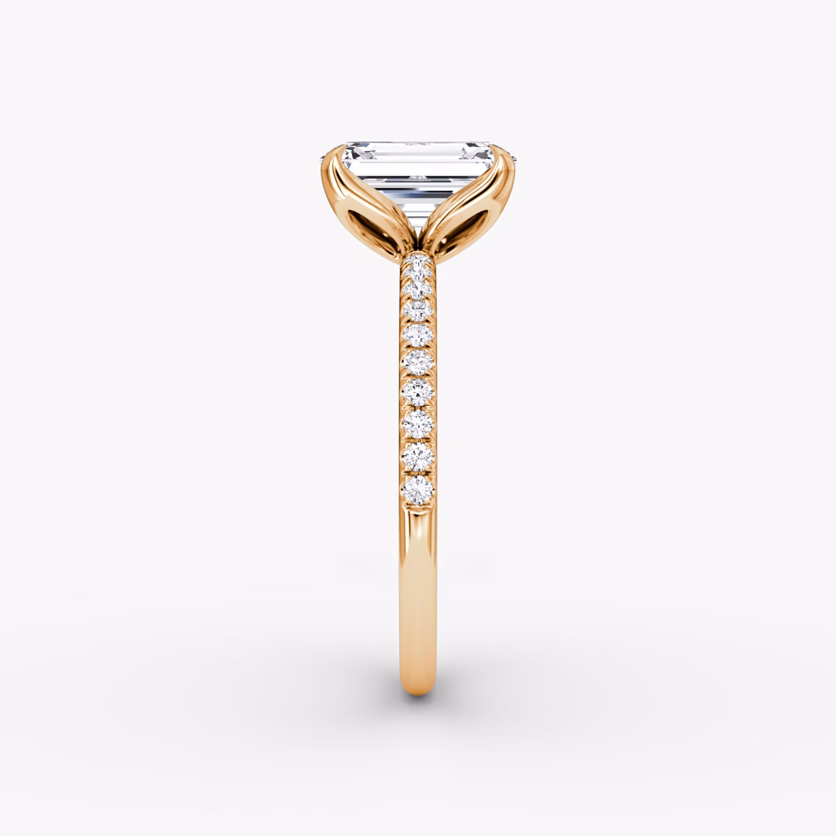 The Classic Petal solitaire in 14k rose gold with a emerald diamond