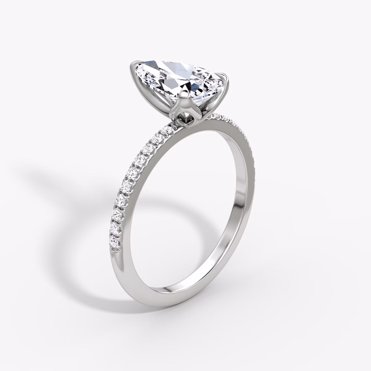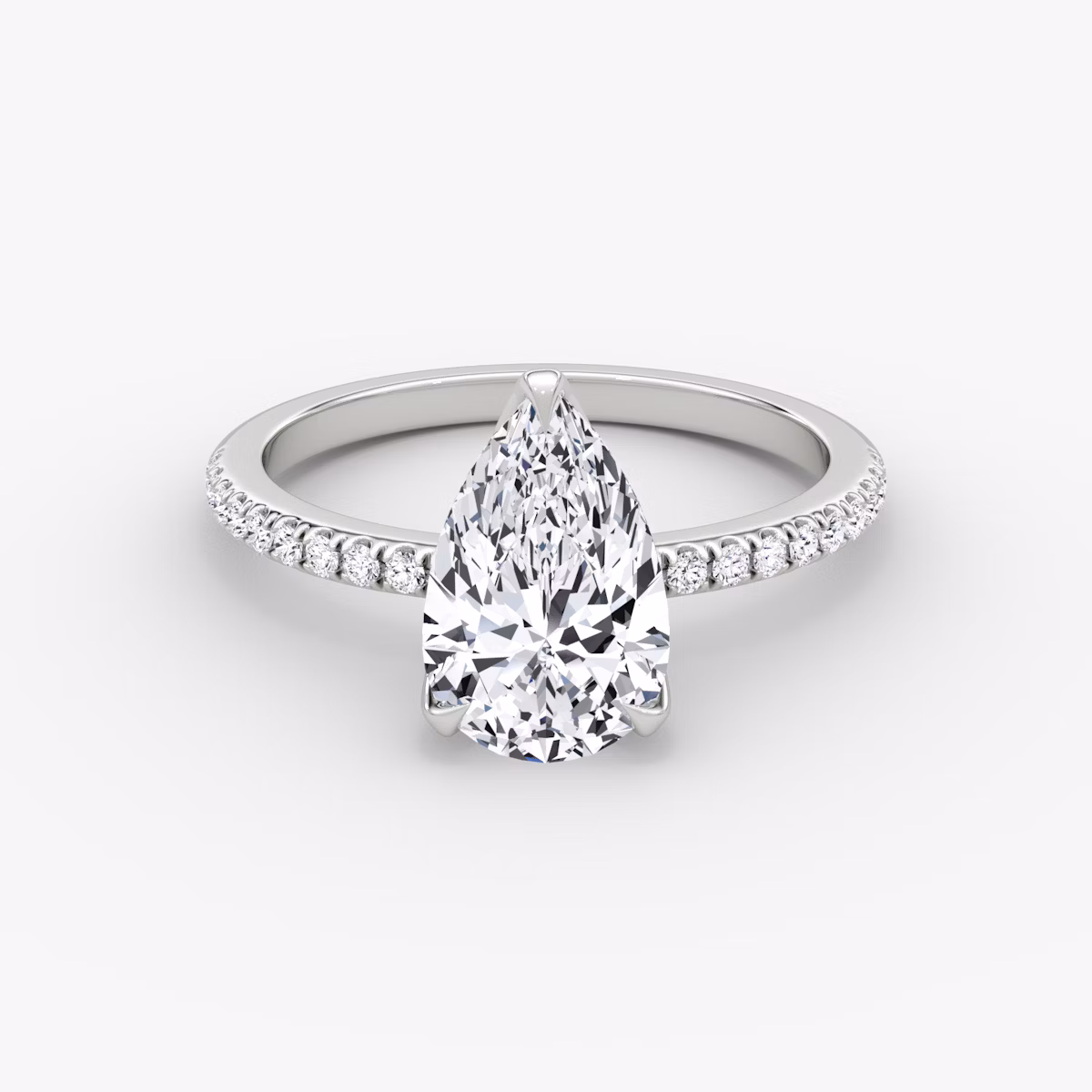 The Classic Petal solitaire in 18k white gold with a pear diamond