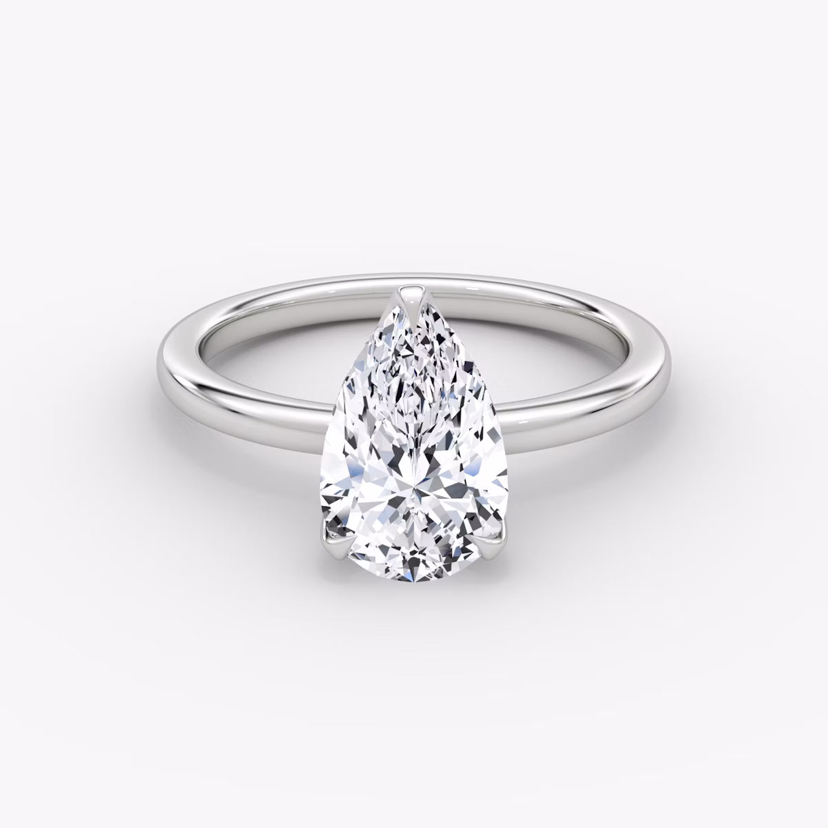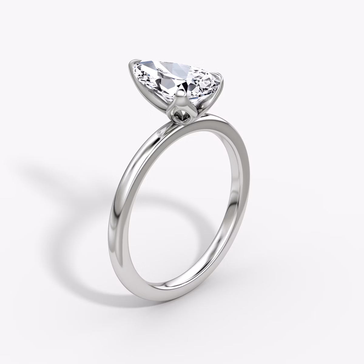 The Classic Petal solitaire in 18k white gold with a pear diamond
