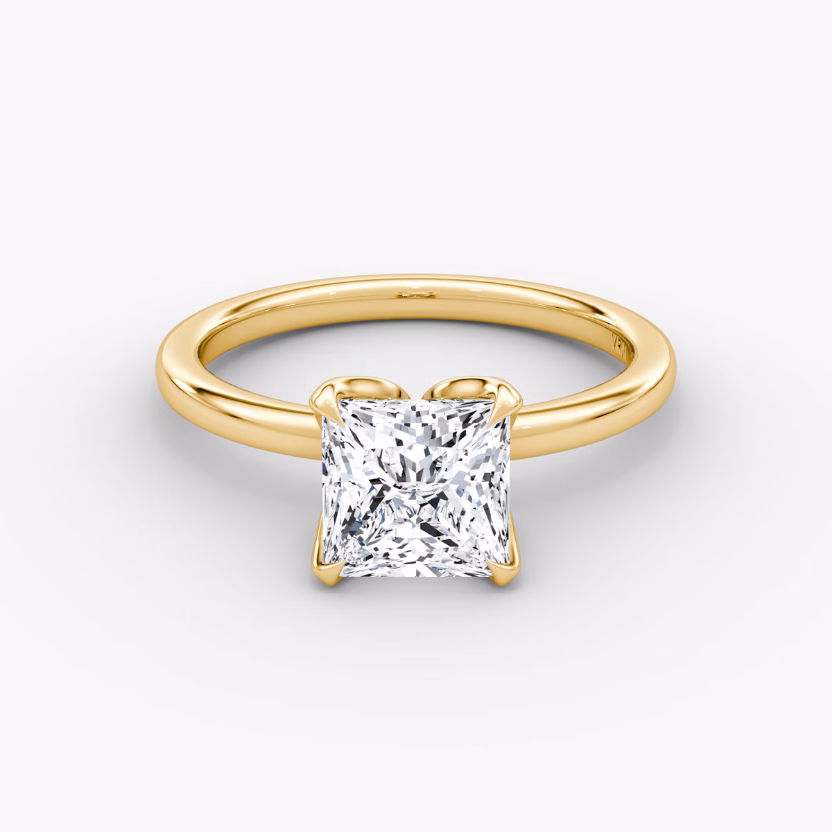 The Classic Petal solitaire in 18k yellow gold with a princess diamond