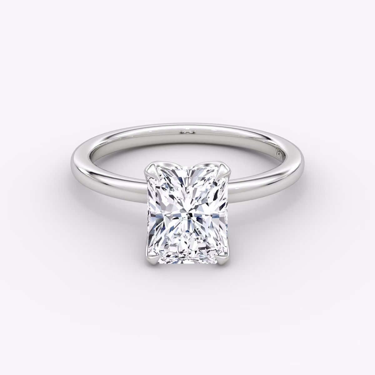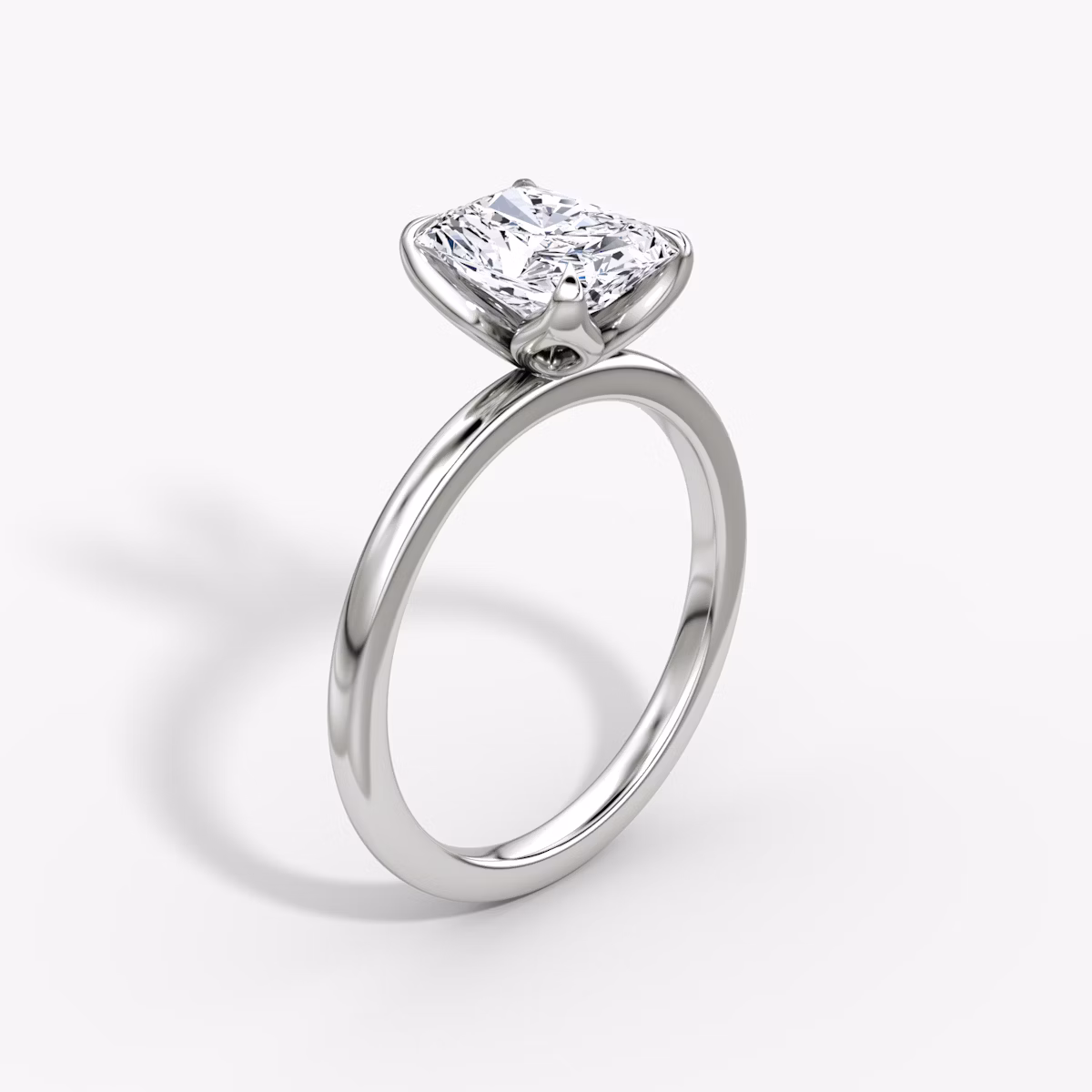 The Classic Petal solitaire in 18k white gold with a radiant diamond
