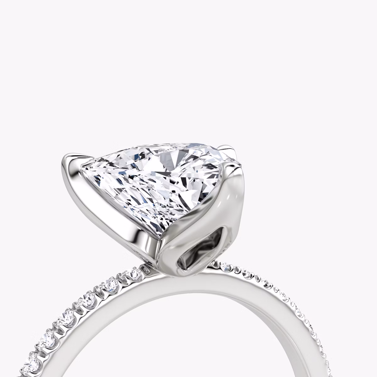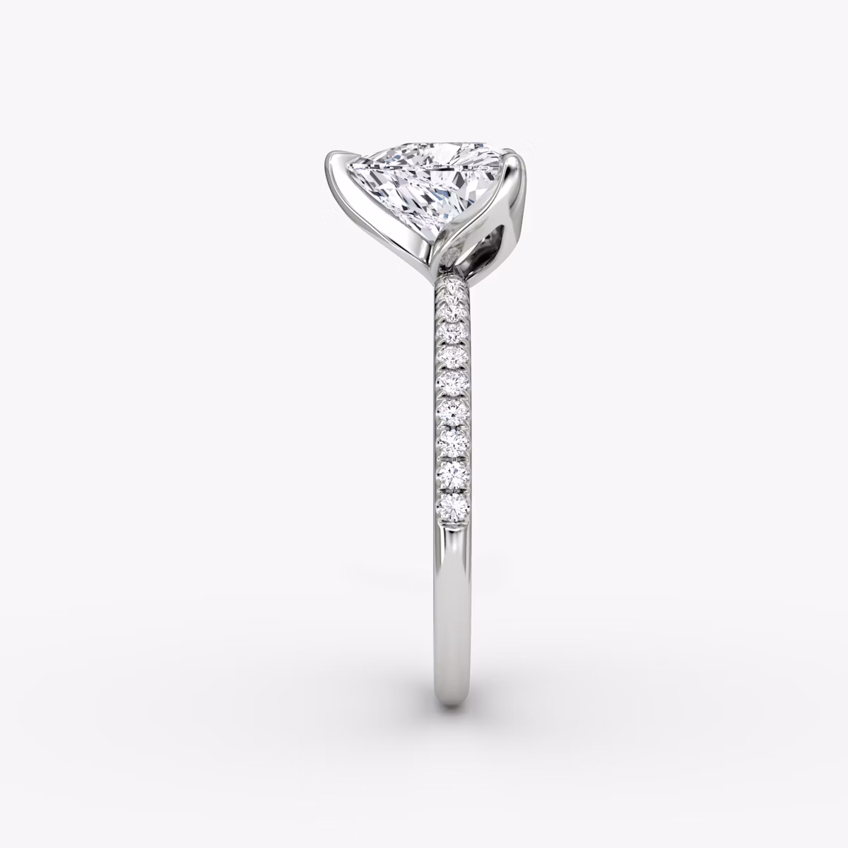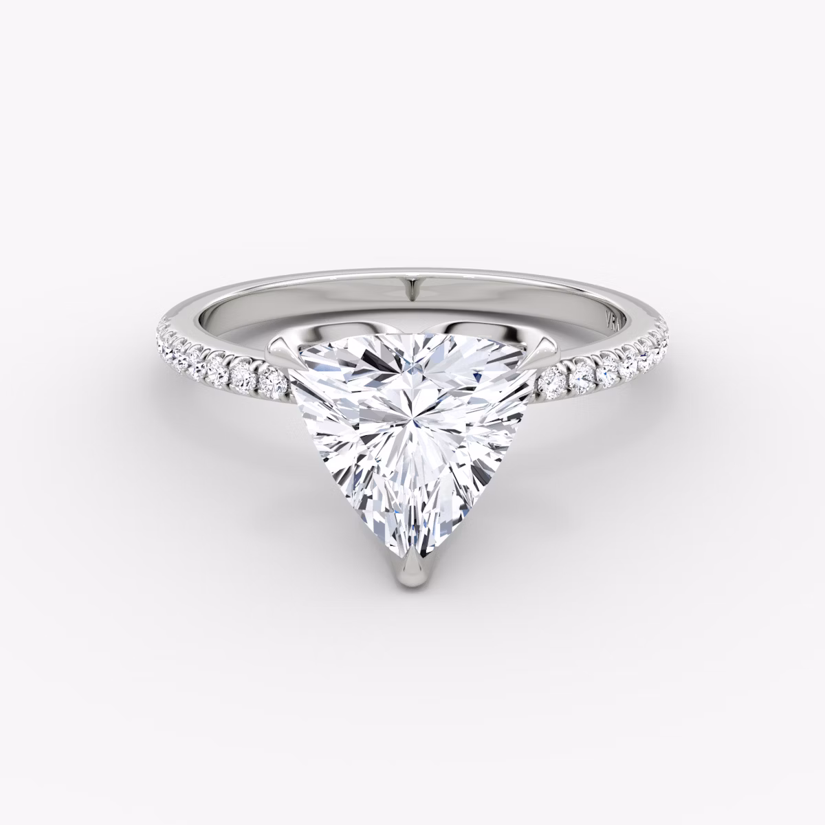 The Classic Petal solitaire in 18k white gold with a trillion diamond