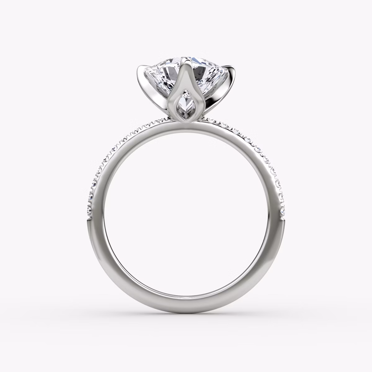 The Classic Petal setting combines the elegance of our Classic solitaire with subtle floral details. Four petal-shaped prongs secure the center stone in place while allowing light to enter from all directions for maximum brilliance. Select platinum, solid gold, and pavé details for a garden-inspired design true to your style.