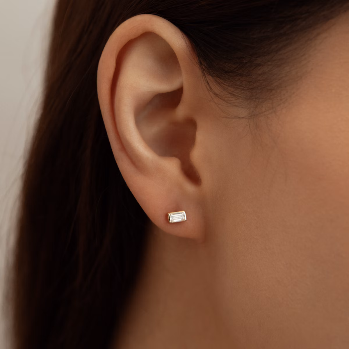Bezel Solitaire Stud | Baguette | 14k | Yellow Gold | caratWeight: 0.10ct