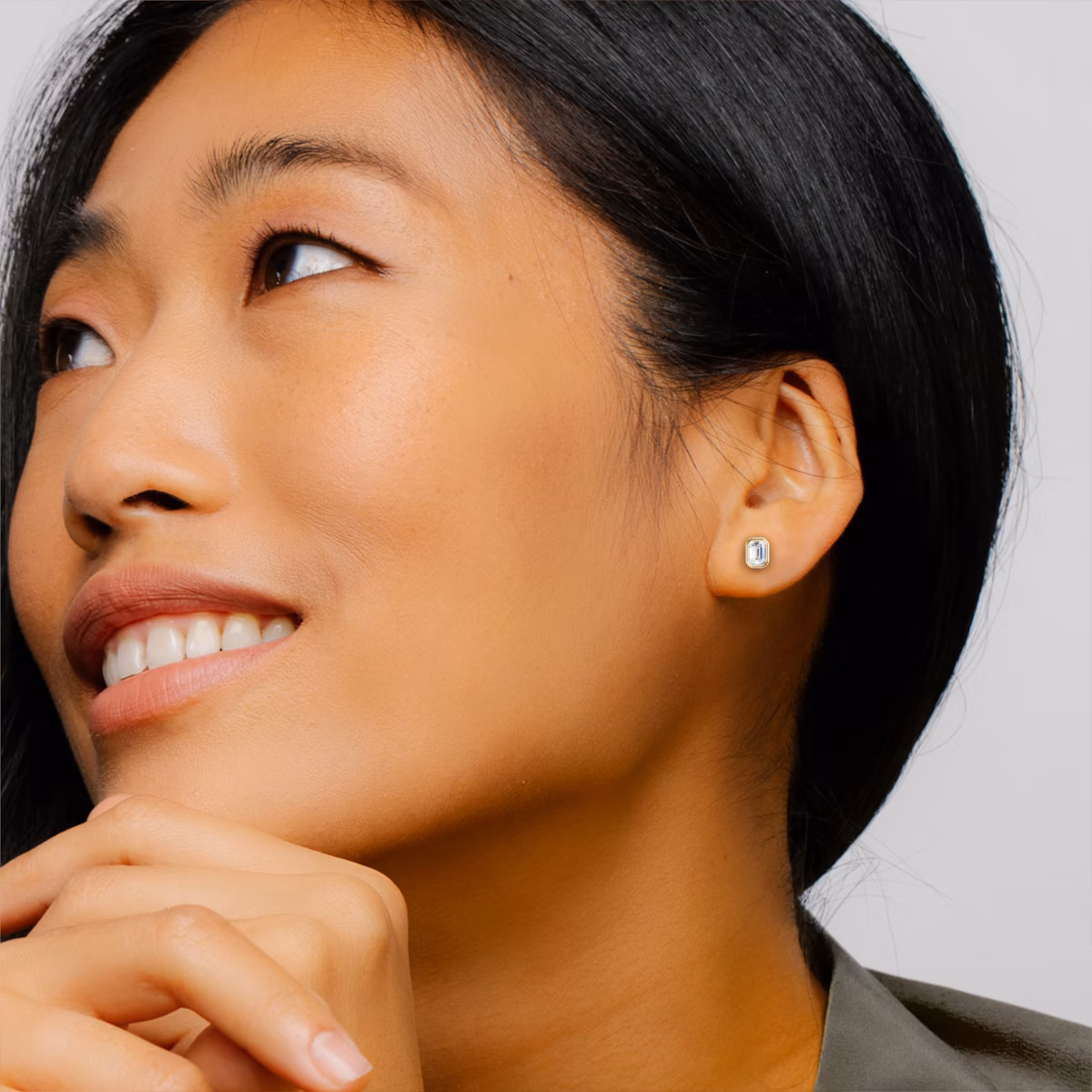 The Bezel Solitaire Studs combine vintage-inspired detail and modern appeal together for a look that’s timelessly elegant. A 14k solid gold or sterling silver bezel setting outlines the distinctive form of eight different VRAI created diamond shapes in customizable sizes while drawing in and bouncing light in every direction.