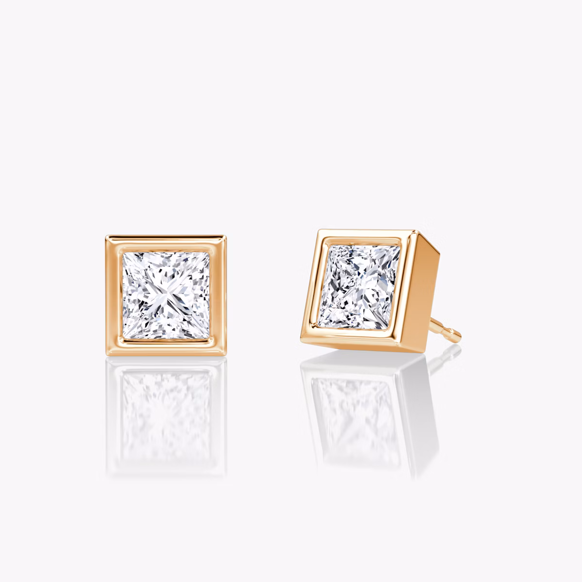 Bezel Solitaire Stud | Princess | 14k | Rose Gold | caratWeight: 0.75ct