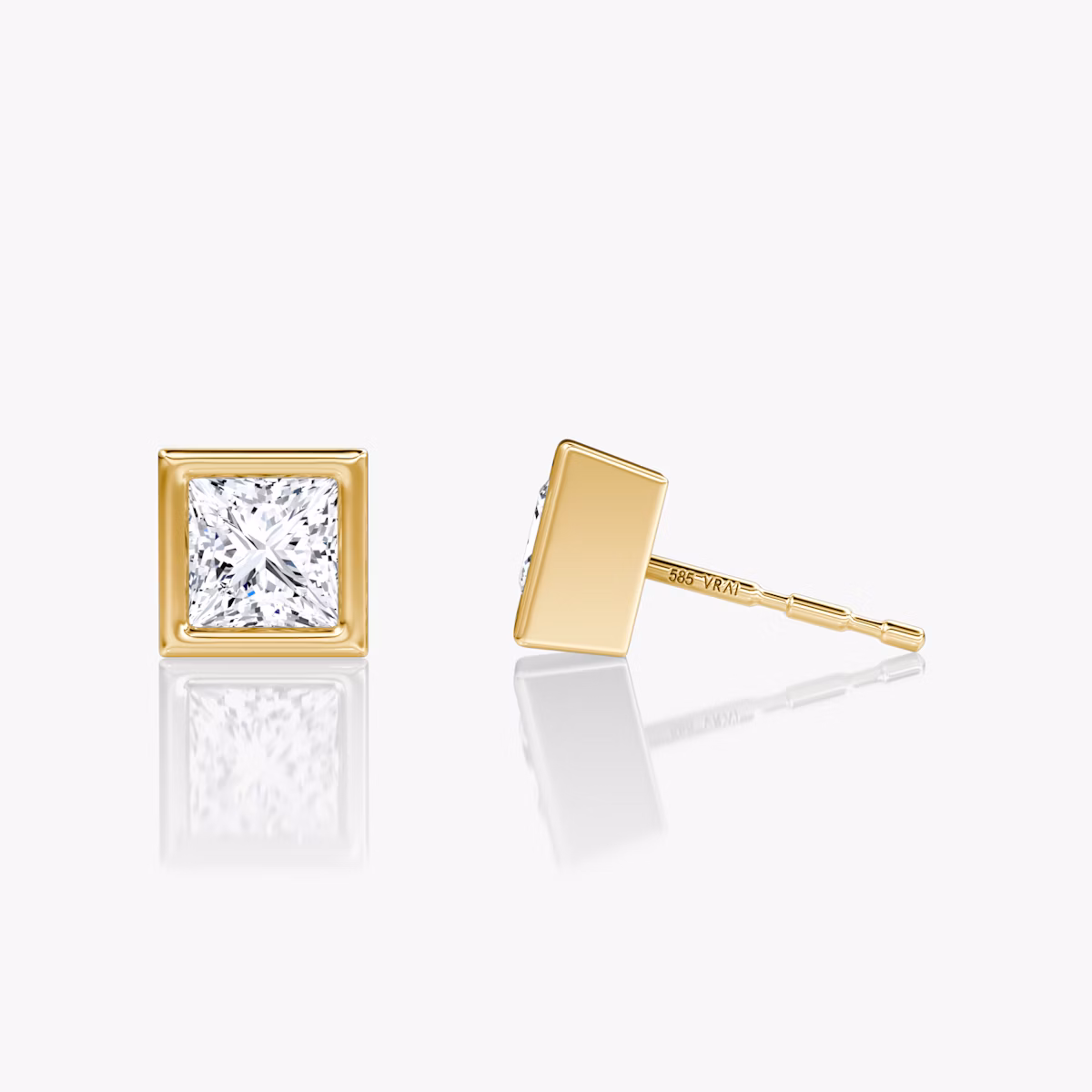 The Bezel Solitaire Studs combine vintage-inspired detail and modern appeal together for a look that’s timelessly elegant. A 14k solid gold or sterling silver bezel setting outlines the distinctive form of eight different VRAI created diamond shapes in customizable sizes while drawing in and bouncing light in every direction.