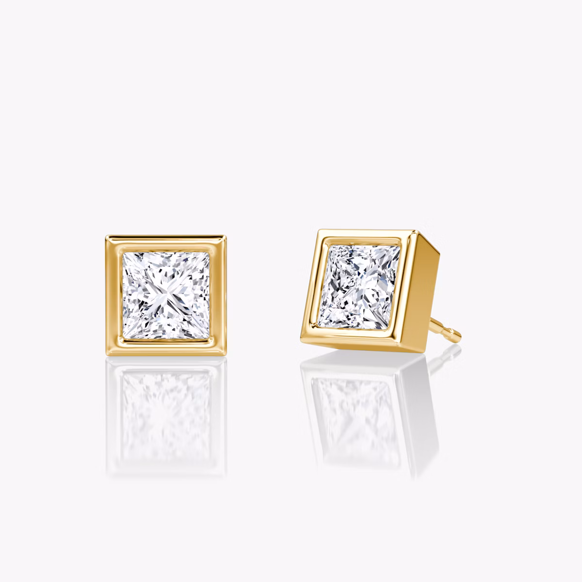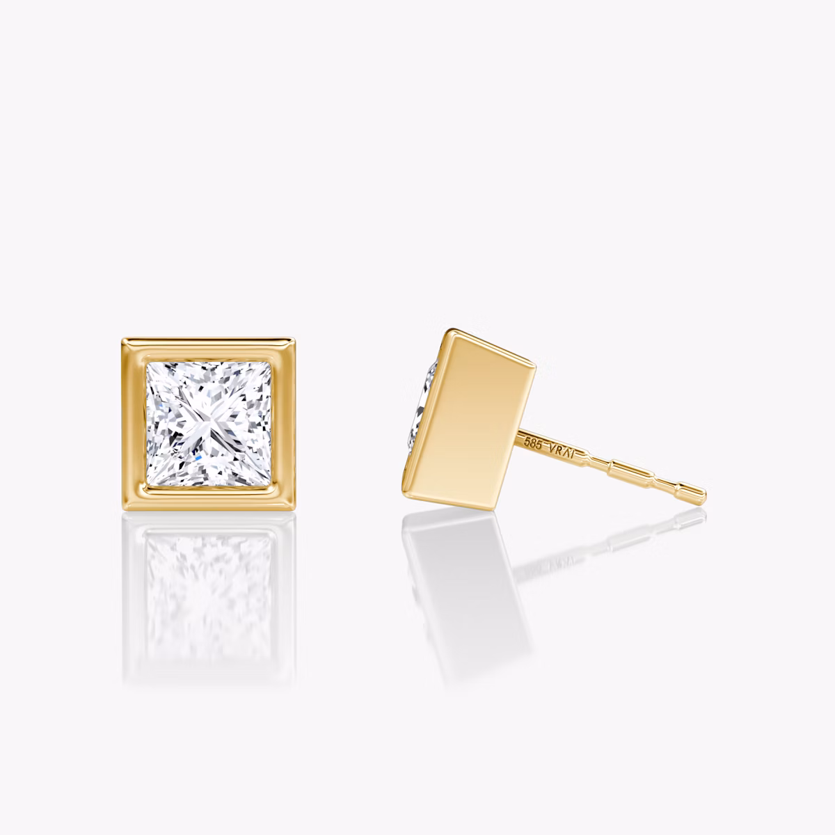Bezel Solitaire Stud | Princess | 14k | Yellow Gold | caratWeight: 0.75ct