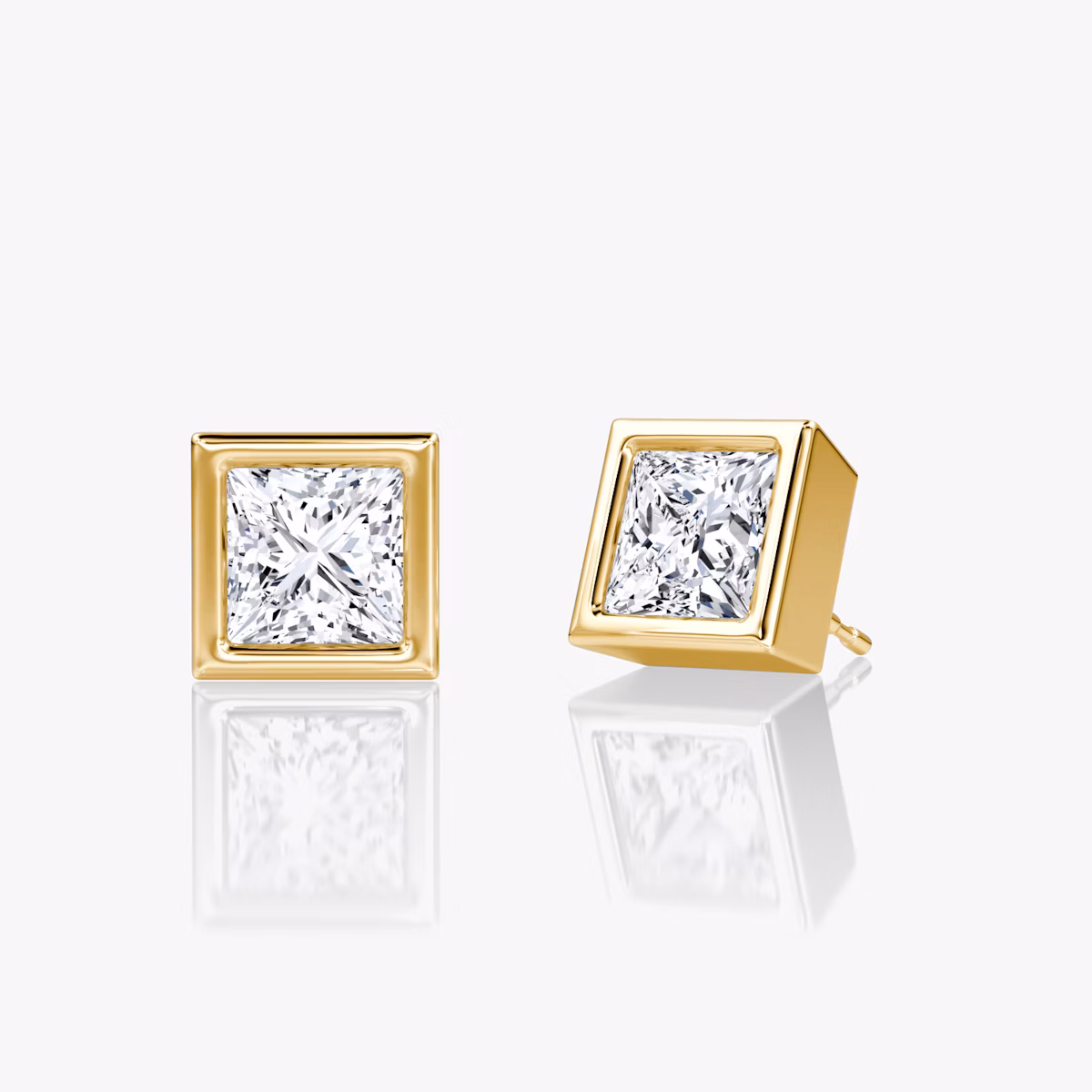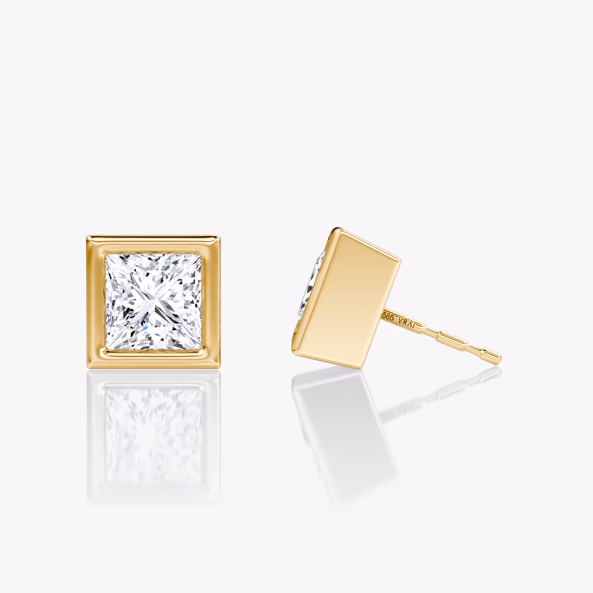 The Bezel Solitaire Studs combine vintage-inspired detail and modern appeal together for a look that’s timelessly elegant. A 14k solid gold or sterling silver bezel setting outlines the distinctive form of eight different VRAI created diamond shapes in customizable sizes while drawing in and bouncing light in every direction.