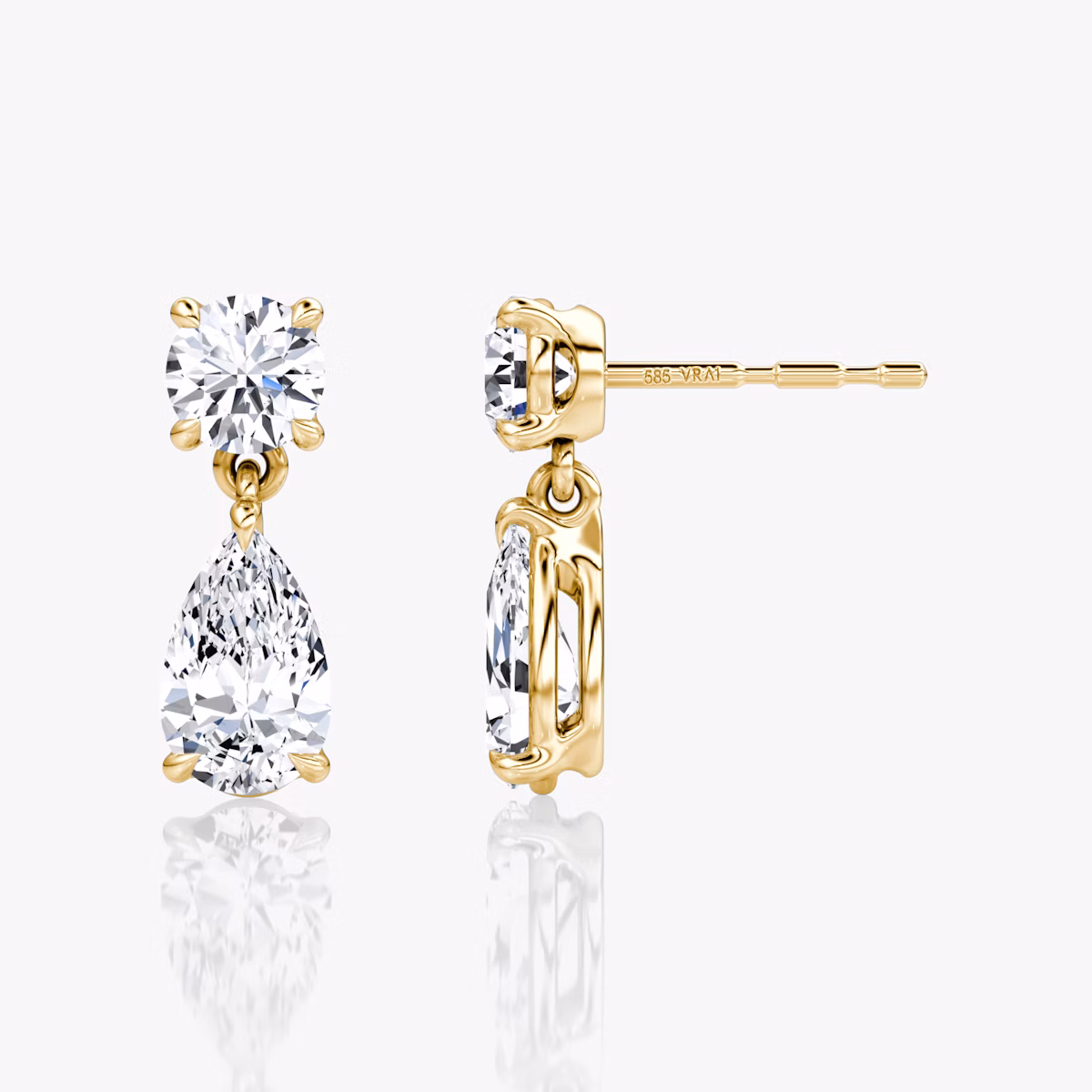 Signature Drop Earring | Round Brilliant and Pear | 14k | Yellow Gold | caratWeight: 0.75ct