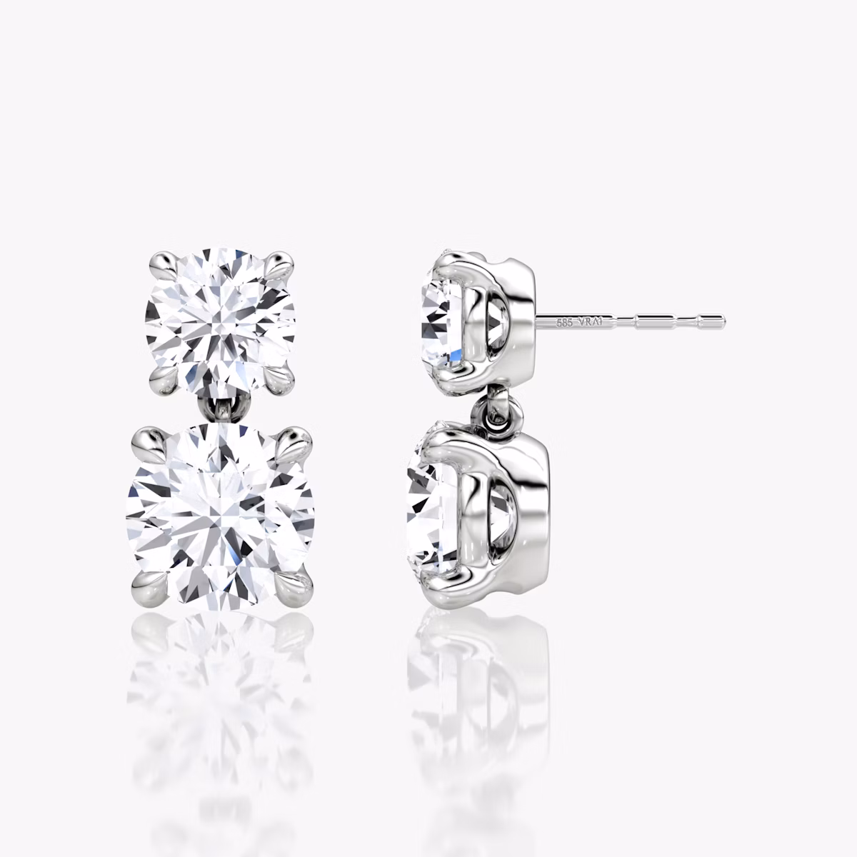 Mix or match two VRAI created diamond shapes set in our signature 14k gold drop setting for an elegant, enduring design that truly reflects you. Customize the style and silhouette of our Signature Duo Drop Earring with your choice of three different VRAI created diamond shapes and two set carat weights. This sophisticated design can be worn alone or paired with our matching necklace.