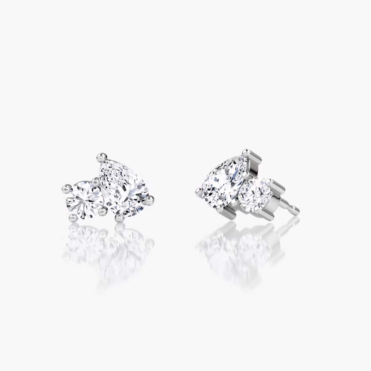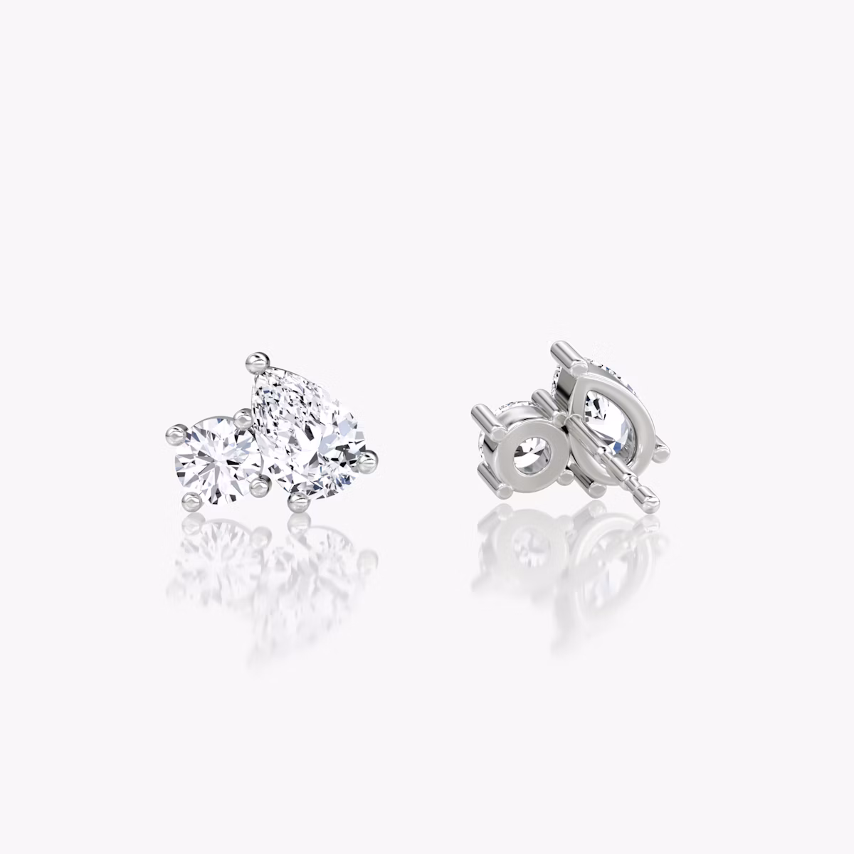 Toi et Moi Stud | Round Brilliant and Pear | 14k | White Gold | side: left