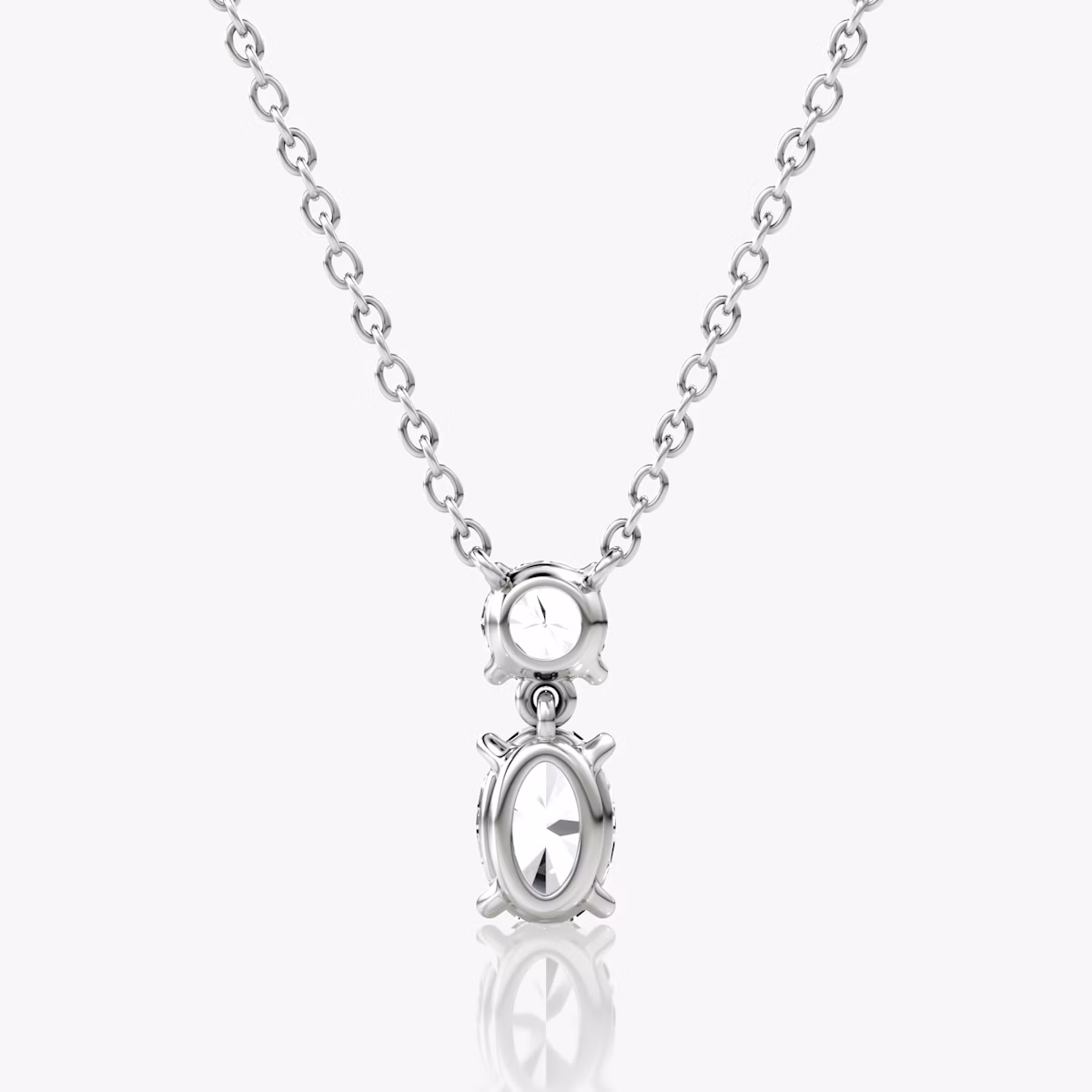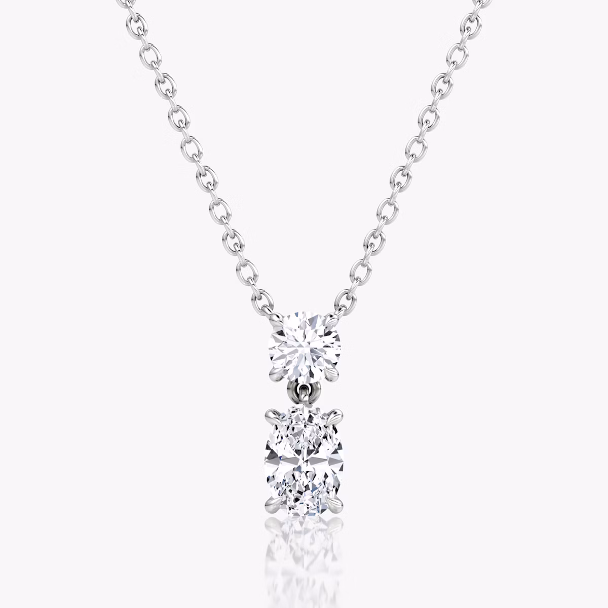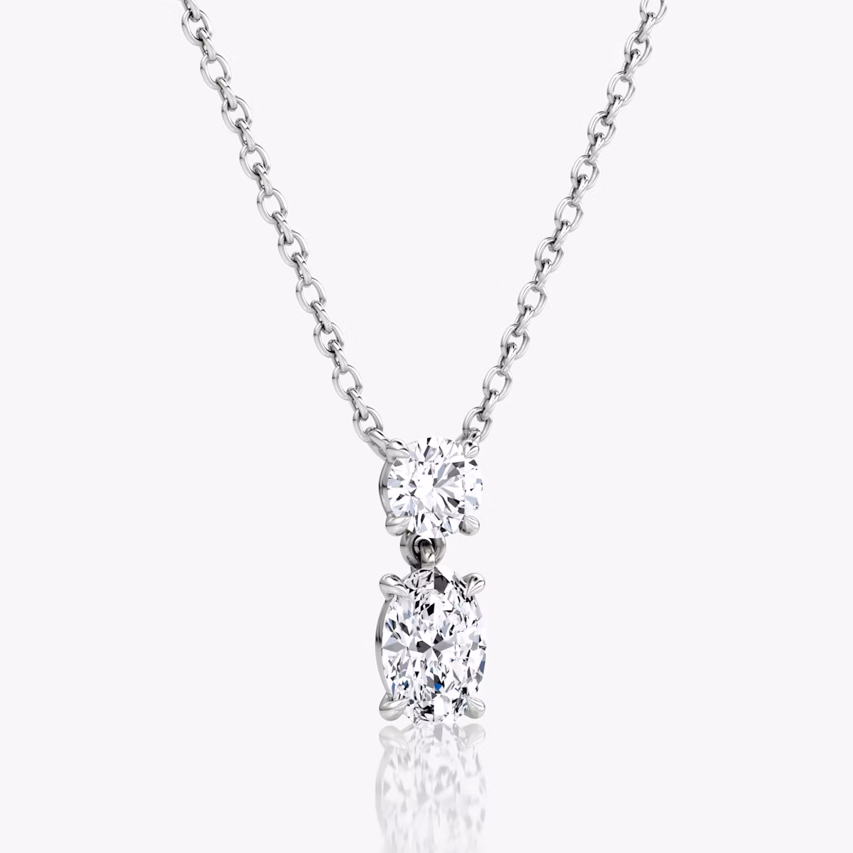 Our Signature Duo Drop Necklace brings the refined elegance of our Duo Drop earrings to a classic necklace design. Choose between a Round Brilliant pairing, Round Brilliant and Oval, or Round Brilliant and Pear cut VRAI created diamonds. Set in a 14k gold drop setting and matching solitaire chain, this sophisticated silhouette can be worn alone or paired with our matching earrings.