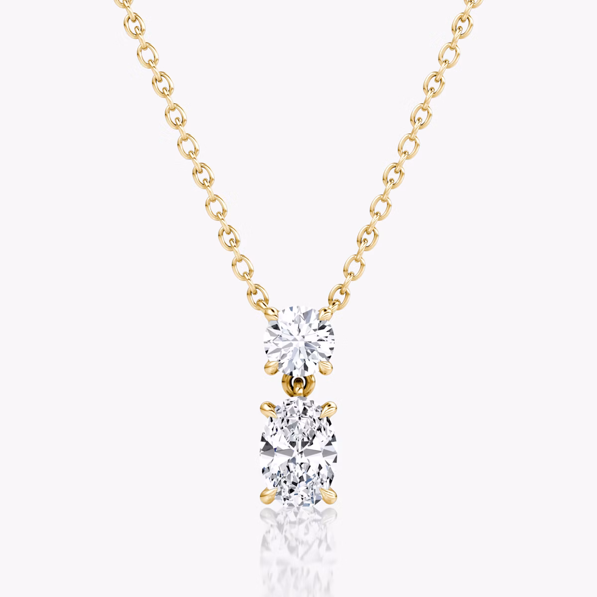 Signature Duo Drop Necklace | Round Brilliant and Oval | 14k | Yellow Gold | caratWeight: 0.75ct