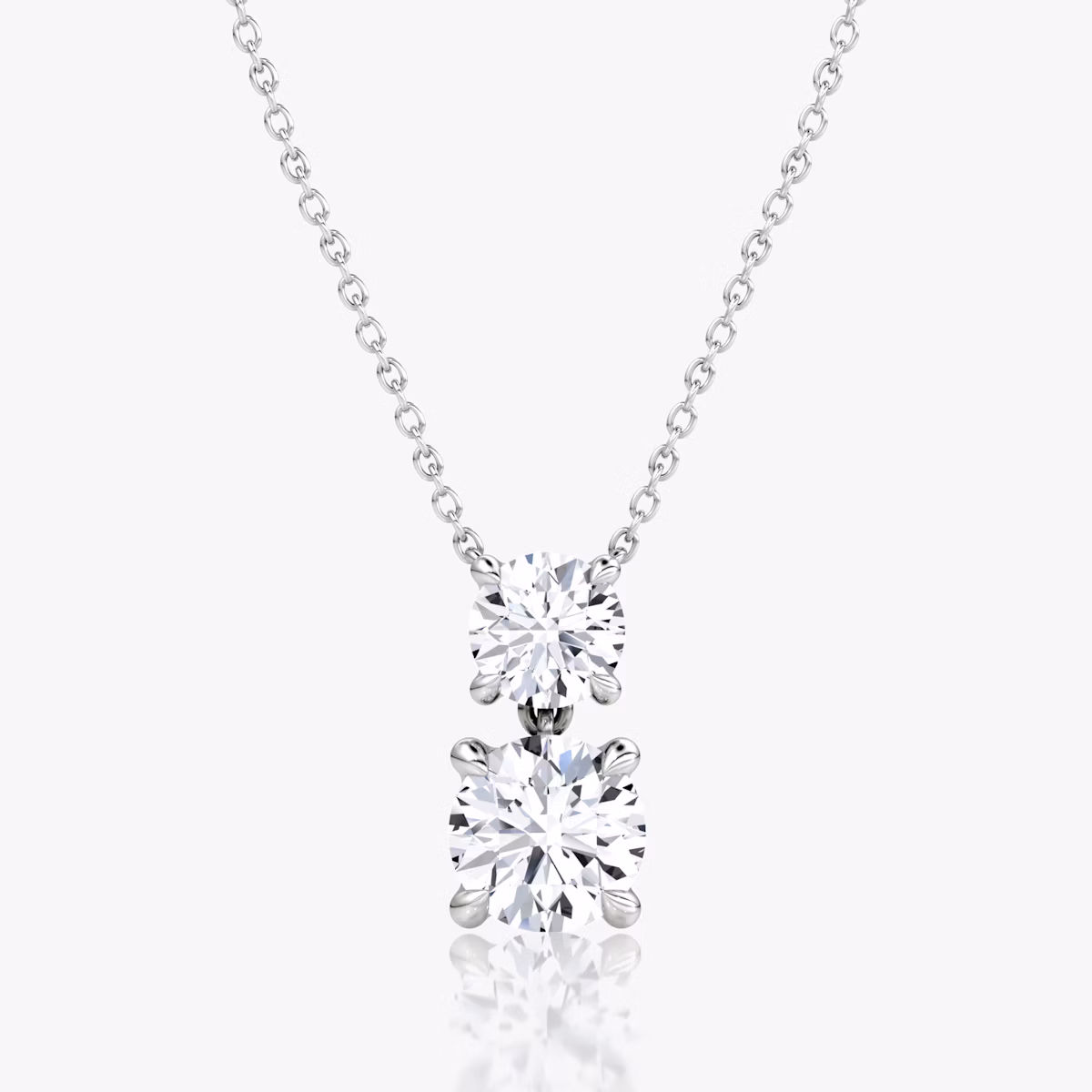 Signature Duo Drop Necklace | Round Brilliant and Round Brilliant | 14k | White Gold | caratWeight: 3ct