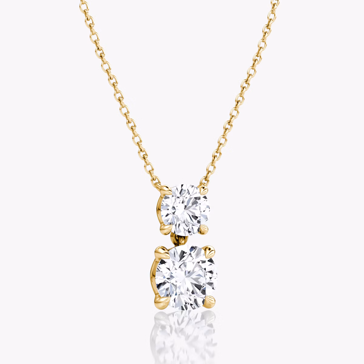 Signature Duo Drop Necklace | Round Brilliant and Round Brilliant | 14k | Yellow Gold | caratWeight: 3ct