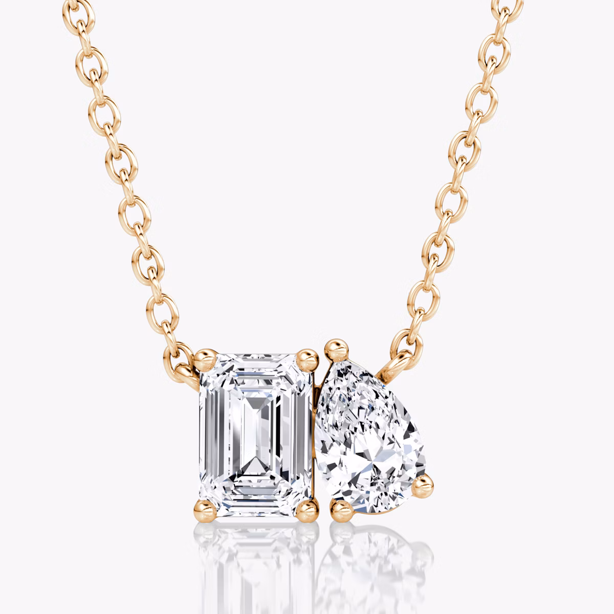 Toi et Moi Necklace | Emerald and Pear | 14k | Rose Gold | chainLength: 16-18