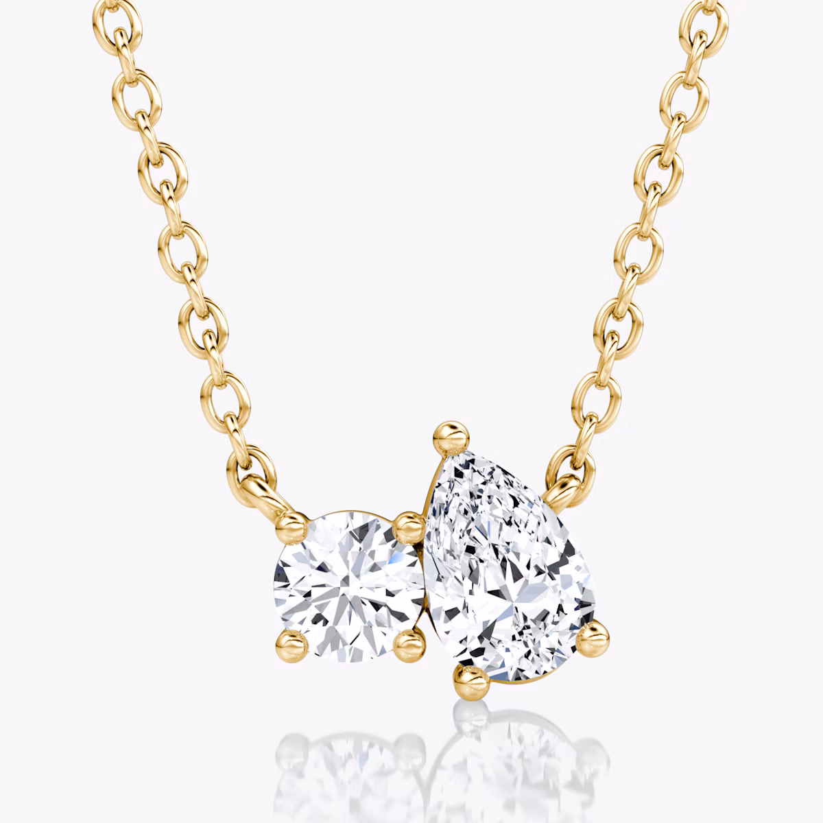 French for "you and me", the Toi et Moi Necklace celebrates a perfect pairing. The two-stone design features a combination of Round Brilliant and Pear, or Pear and Emerald cut VRAI created diamonds. Choose a 14k yellow, white, or rose gold setting and matching chain for a timeless design true to your style.
