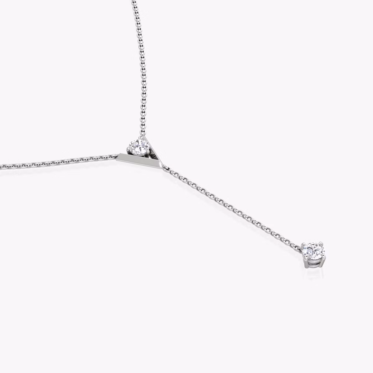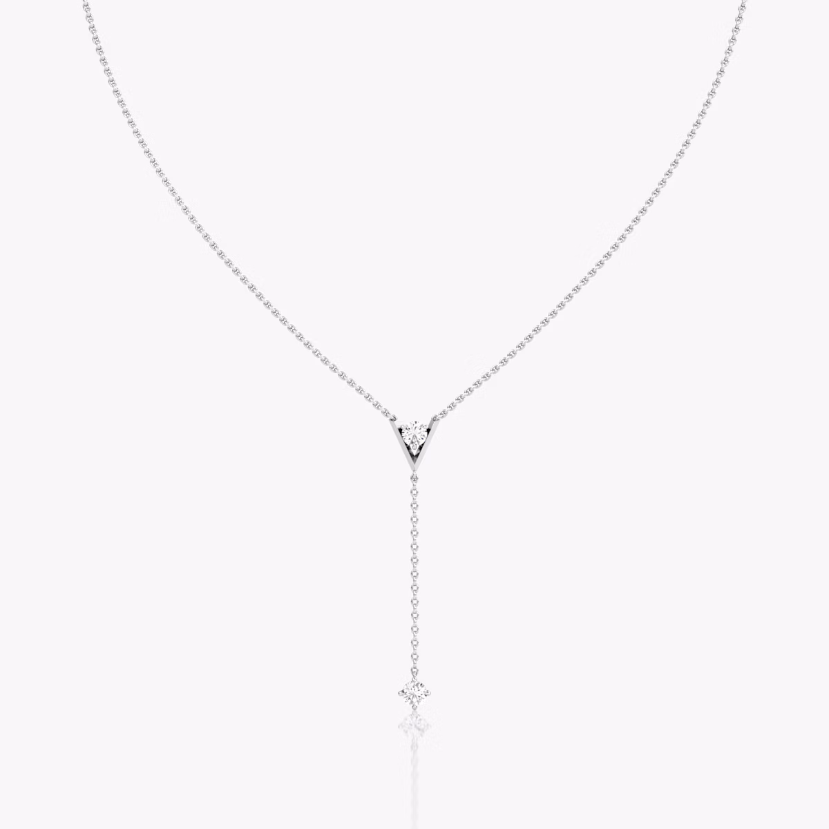 VRAI V Duo Lariat Necklace | Round Brilliant and Round Brilliant | 14k | White Gold | chainLength: 16-18