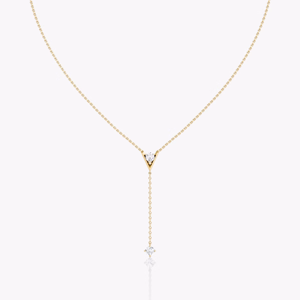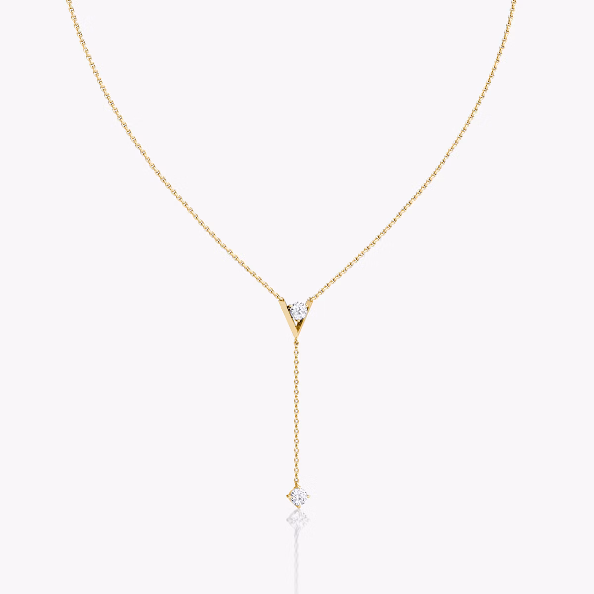 VRAI V Duo Lariat Necklace | Round Brilliant and Round Brilliant | 14k | Yellow Gold | chainLength: 16-18